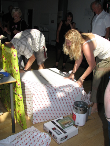Brudeparret åbner gaven fra vores del af familien