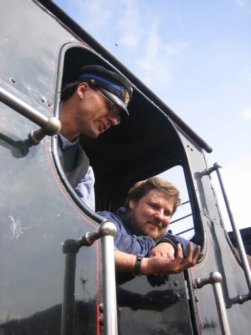 Anders Dørge (lokomotivfører) og Jens efter sidste tur med OKMJ 14 [© Dorthe Lindkilde]